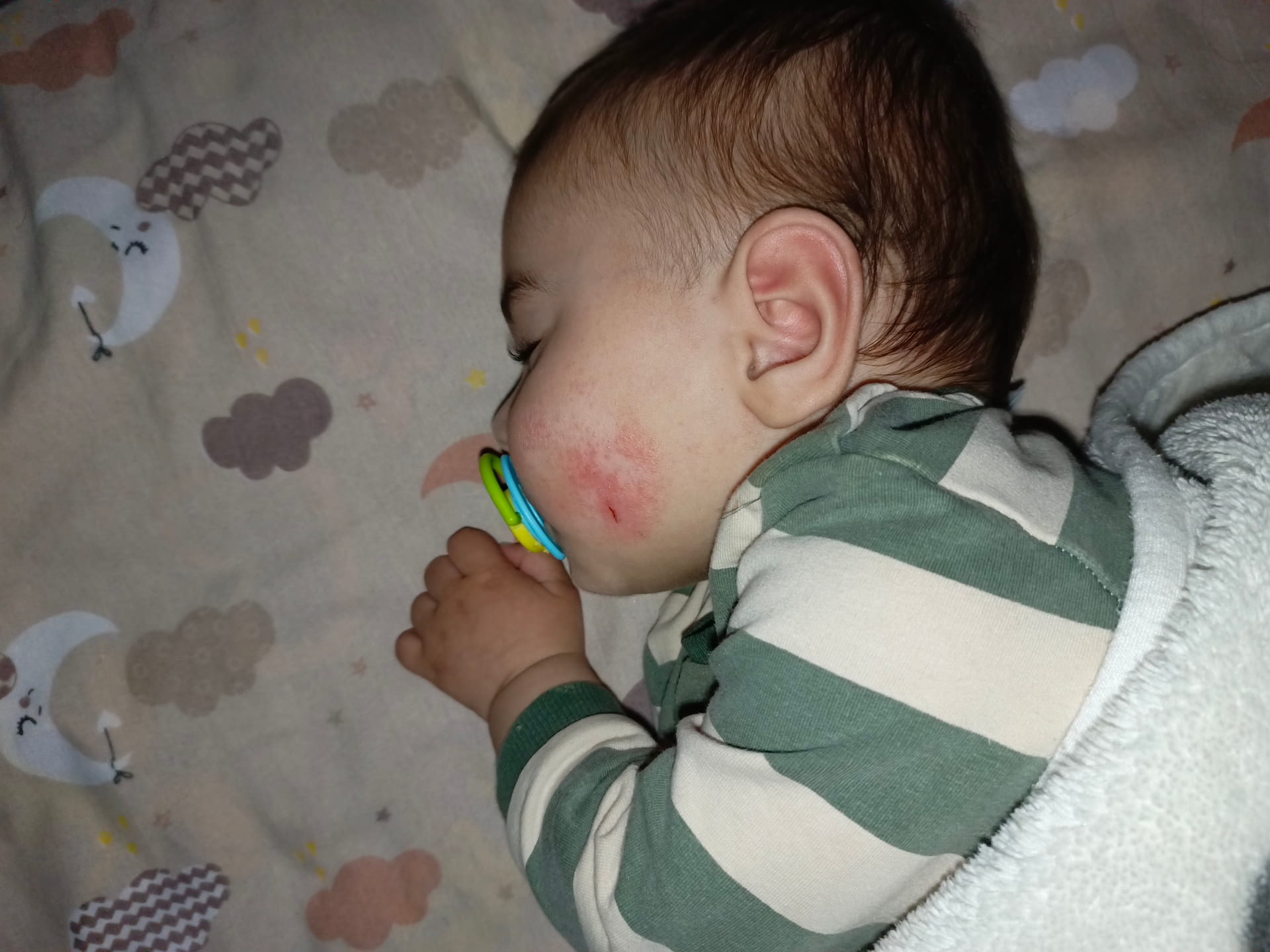 Oğlum 3 aylıkken alerji testi yaptırmıştık tahin ve kuruyemiş alerjisi çıkmıştı o zamandan şuana kadar tüketmiyorum ve ona da yedirmedim daha hiç bebeğim zaten çok fazla emmiyor beni ek gıdaya geçtiğimiz zaman da tadım döneminde her besini tek tek denedim ve kontrol ettim alerji olur mu diye ama malum yüzünde egzaması var alerjiden dolayı ve asla tamamen sönmediği için ( şuan ki kadar çok değildi ama ufacık bir daireydi nohut kadar tek yanakta ) alerji durumunu vücudundan ve kakasından kontrol ediyordum hep vücudun da hiç kızarıklık olmadı ve kakası da her zaman normaldi ama son 1 aydır oğlumun yüzü mahvoldu egzaması arttı yayıldı diğer yanağında da çıkıyor artık kabarıyor sürekli doktorumuz o dönem mustela stelatopia önermişti onu kullanıyorum gün içinde 3 4 defa ama etkisi azaldı sanki bu ay hiç etki etmiyor gibi yarın Bioderma atoderm alıp denicem son günlerde hep yüzünü kaşıyor ve bugün kanattı içim gidiyor kaşıdığı zaman