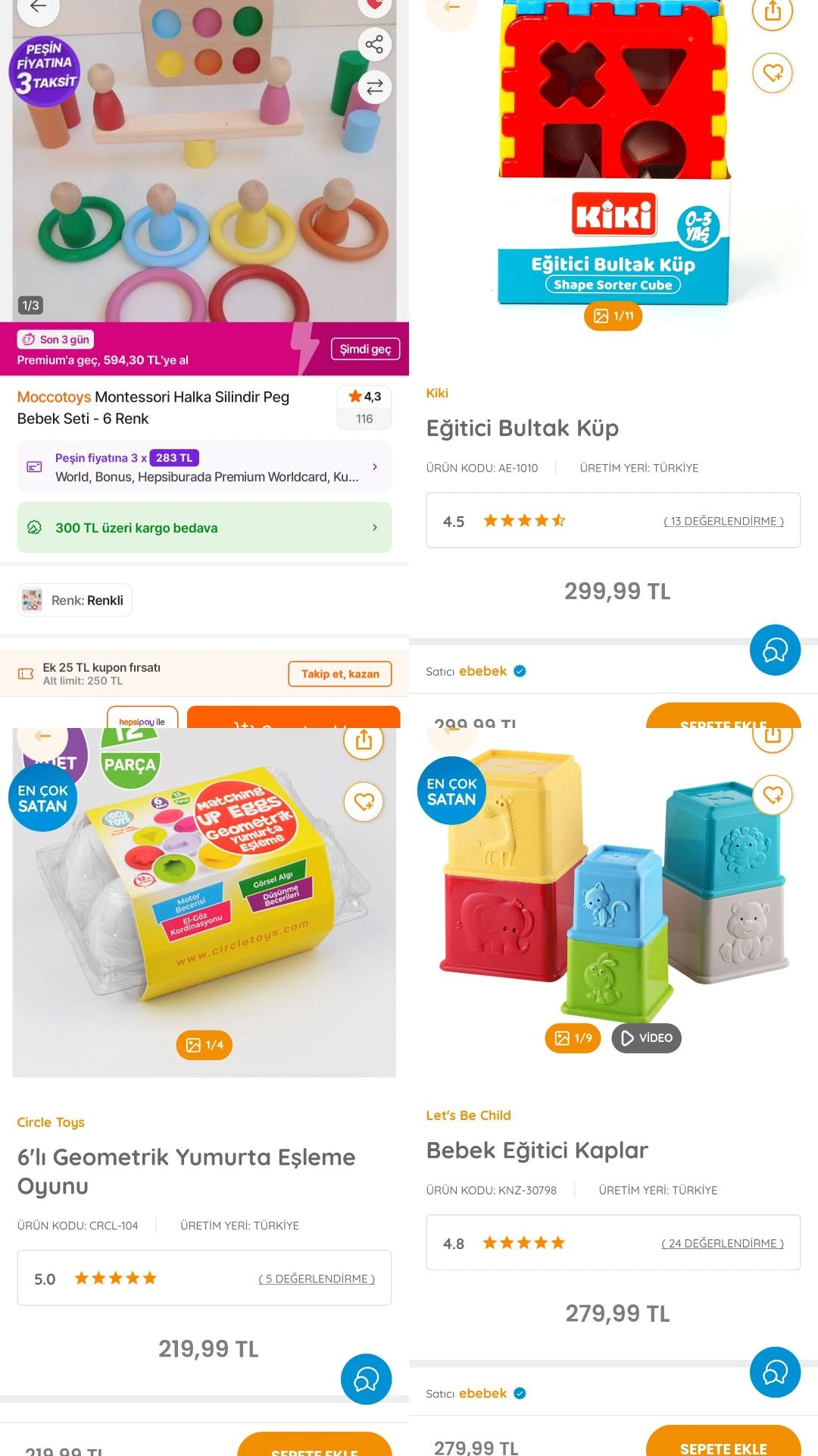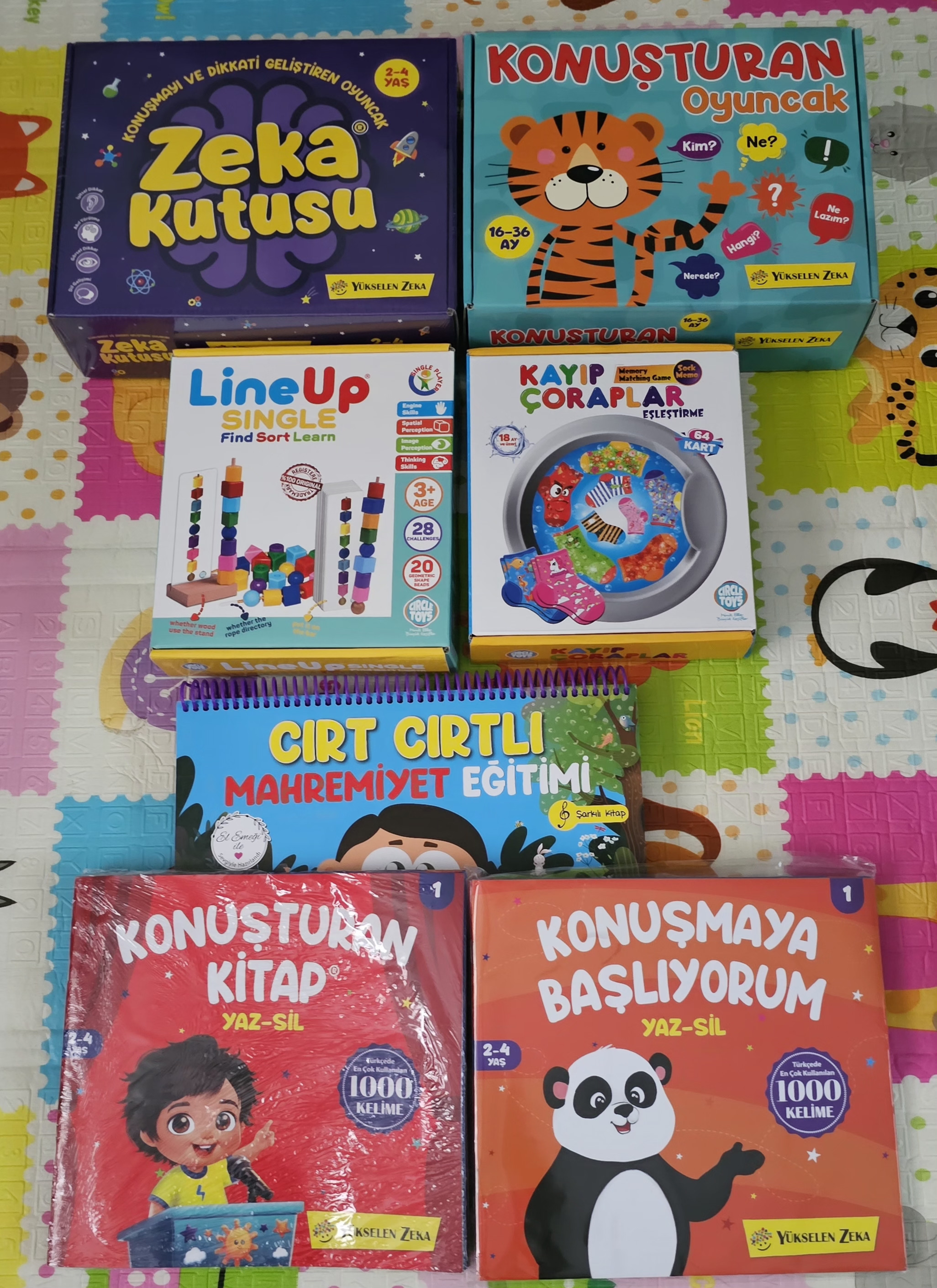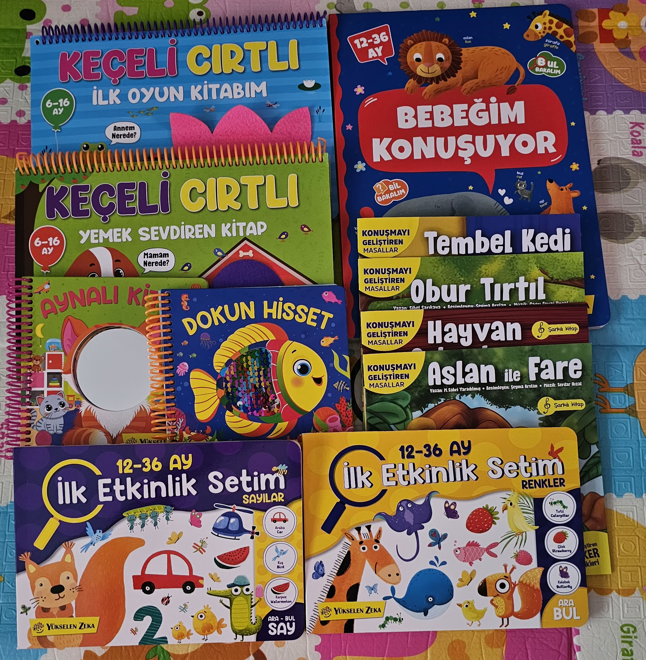 İlk fotoğraftakileri daha yeni aldım ama ayına göre büyük. Kitapları okuyoruz çok seviyor heyecanlanıyor. Oyuncaklar da birazını yapıyor birazını yapamıyor. Yapamadıklarını yapmaya çalışıyoruz. Özellikle renkli halkalar ve eğitici kaplar olanı çok seviyor gün içinde baya oyalanıyoruz. Hatta uyanır uyanmaz renkli halkalar olanı alıyor onu oynuyoruz Suan 15 aylık. Hepsini indirime girdikçe biraz biraz aldım. Malum herseyin fiyatı uçup gidiyor o yüzden ayına uygun olmayanları da aldım.