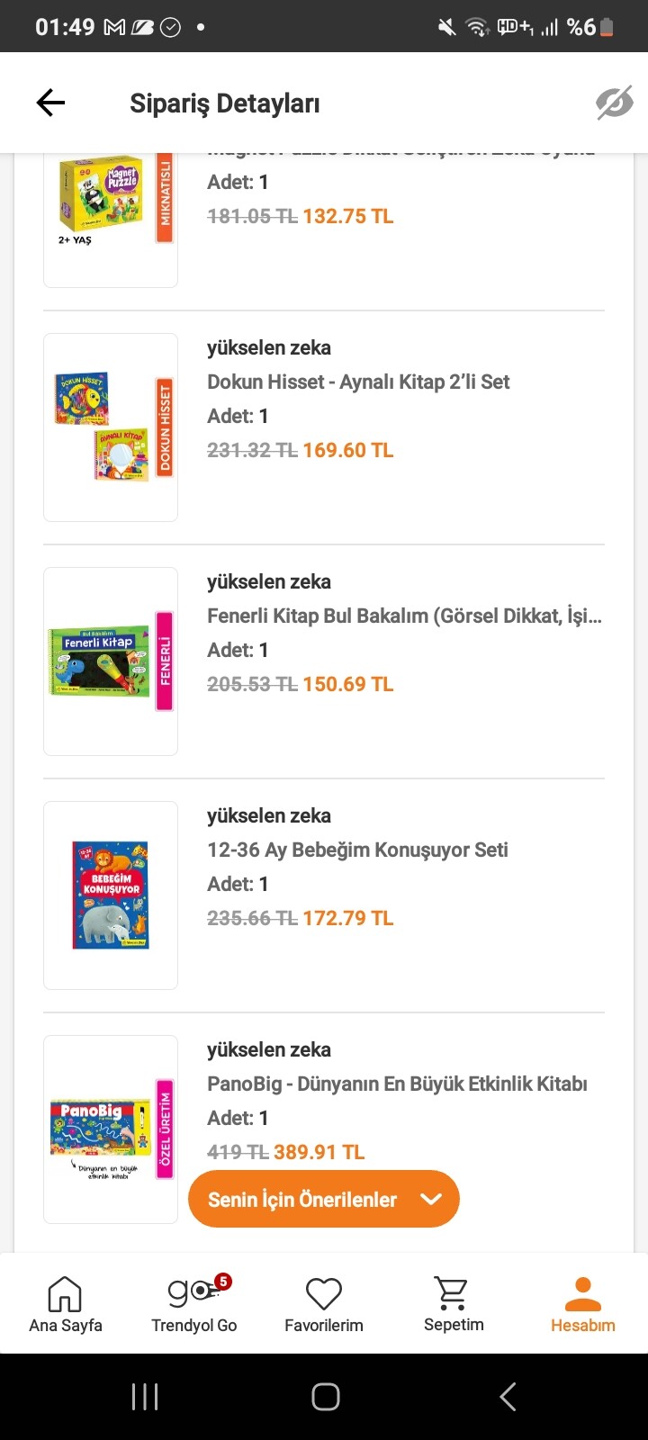 Bende trendyol dan yükselen zekanın kendi satıcısından aldım. Çok güzel şeyler ama insan gerçekten mutlu oluyor incelemek istiyor. Teşekkür ederim inşallah
