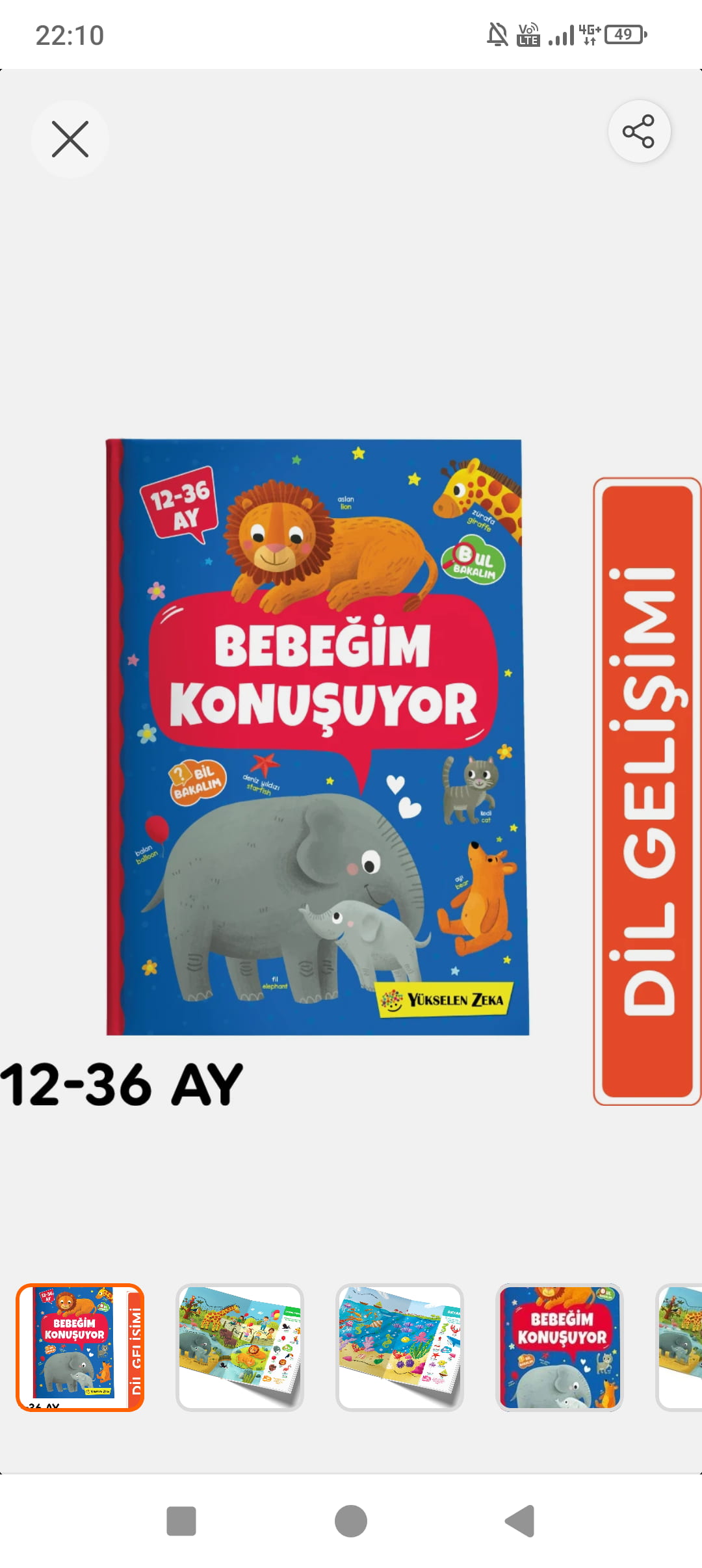Elhamdülillah benim oğlumda çok seviyor kitapları oyuncaklardan çok kitaplara ilgisi var o yüzden bizde daha çok kitap alıyoruz hayvanların isimlerinin sayılması çok hoşuna gidiyor 14.ayı bitti aslan sesi çıkarıyor elhamdülillah kendi kendine anlatıyor kitapları