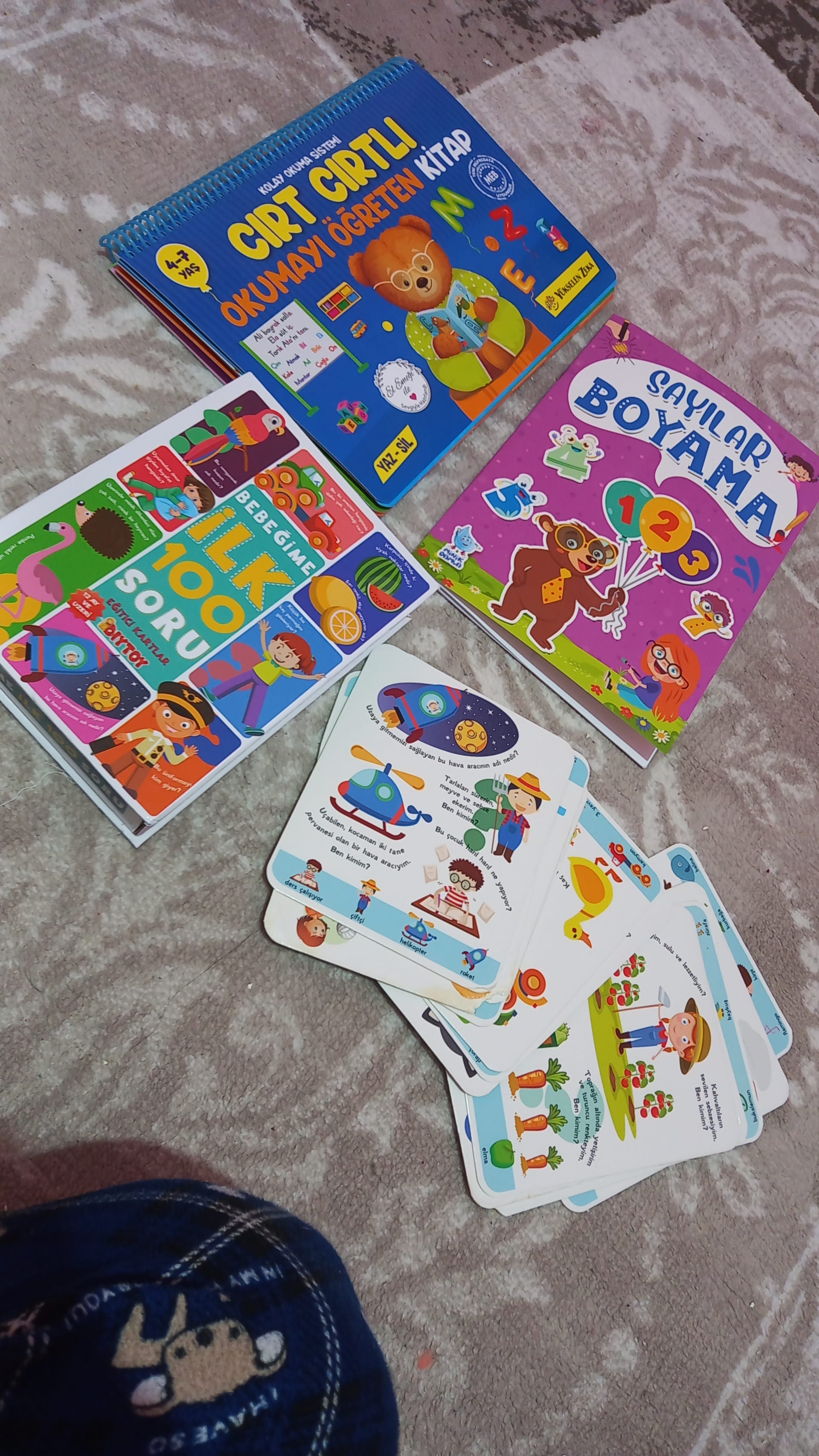 Çok iyi yapmışsın İlgilenmiyor gibi görünse de ara ara çıkarıp göstermeye devam. Kartları bizimki de ısırıyor hâlâ. Bu kitapları da