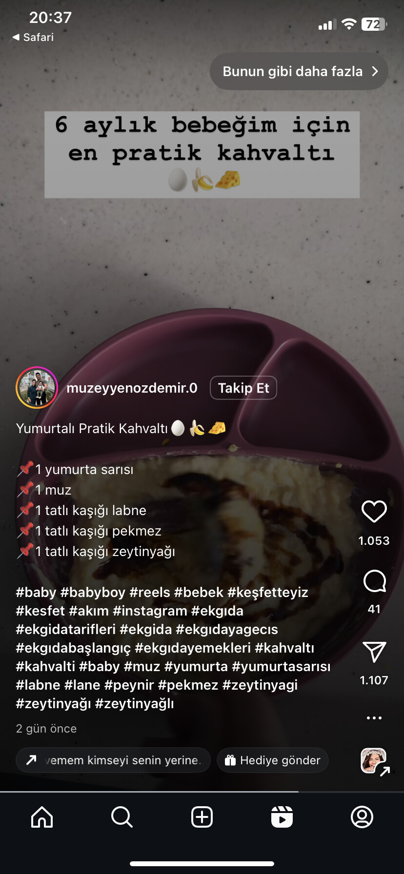 Hanımlar merhaba kızım 6 aylık ek gıdaya başladık. Birçok şeyi tattırdım çorbalara geçtim hatta. Bazen de karışımlar halinde öğüne yakın haliyle veriyorum tabi ana öğünü anne sütü. Yarın yumurta tattırmak istiyorum da insta da şöyle bir tarif gördüm sizce uygun mu? Niye soruyorum henüz Labne ve pekmez vermedim. Versem de sorun olur mu ne yapalım?