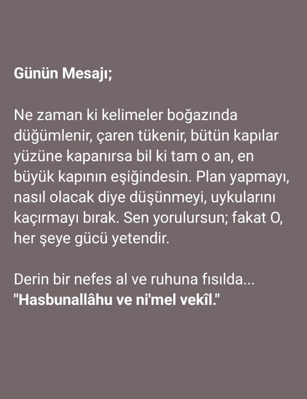 *“Allah bize yeter, O ne güzel vekildir.”* Hazret-i İbrahim عليه السلام ateşe atılırken, Peygamberimiz (sallallahu aleyhi ve sellem) en zor anında da bu kaleye sığınmıştı. Ne zaman ki dünya üzerine gelse, çaren tükense hatırla; sen yalnız değilsin…