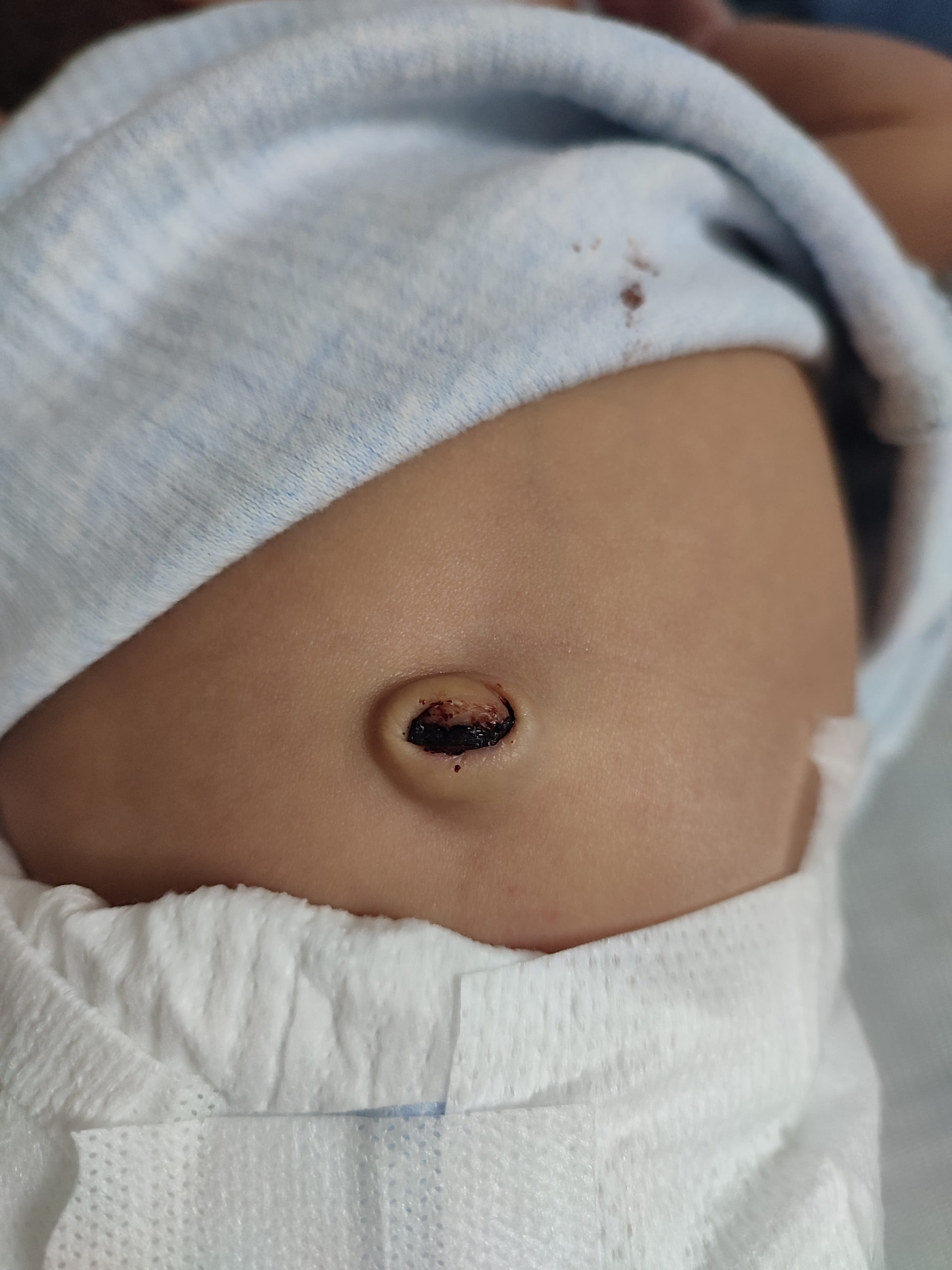 Ben göbeğine bez koyuyorum oraya dökülüyor hem oradan soğuk alır derler o yüzden de tamamen normale dönene kadar o şekilde devam edeceğim.