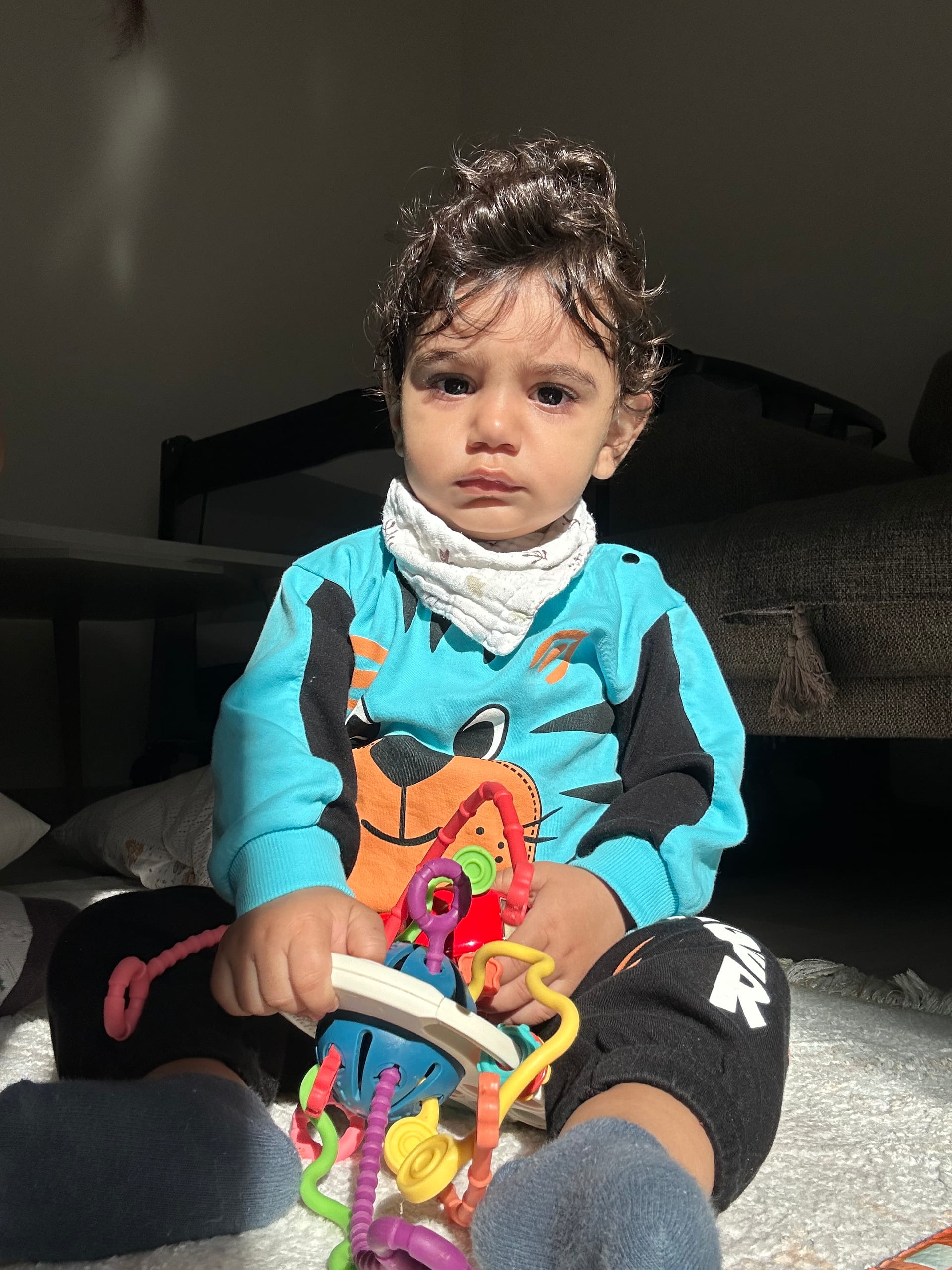 saatlerce uykuya direnip uyku delisi olduktan sonra uyuyan minosum 9ay 16 günlük yan azilar çıkmaya çalışıyor ama çıkmıyor kudurukluk hat safada yurumeyi öğrenmeden tırmanmayı öğrendi kanepe ve besine tirmanmak yeni hobisi oturmayı yatmayı sevmez sürekli tutunarak ayakta