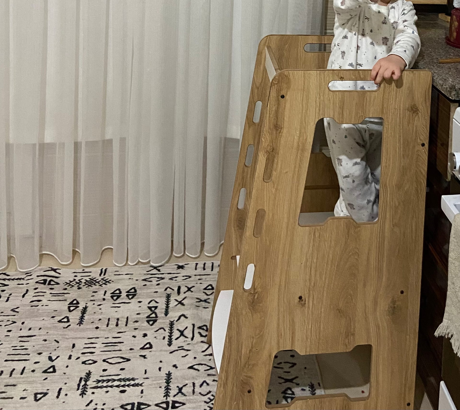 çok mızmızlanmaya başlayınca tezgah boşsa alıyorum onu da yanıma. Tek sıkıntısı kızım eline verdiğim her şeyi lavabonun içine atmaya başladı